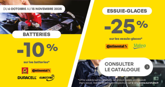 Promo entretien auto : Batteries et Essuie-glaces Du 6 octobre au 15 novembre 2025, profitez de la promotion Entretien auto hiver […]